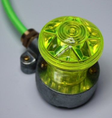Description: This light uses a traditional fairground lamp and cover with fluorescent green braided cable. It can be left on a shelf or table or can be wall mounted using the clip attached.