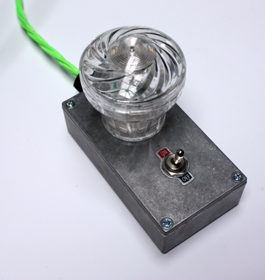 Description: This light uses a traditional fairground lamp and cover mounted on an aluminium case with metal toggle switch. It can be left on a shelf or table.