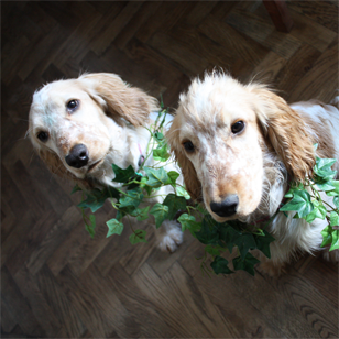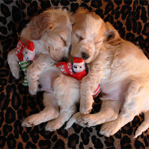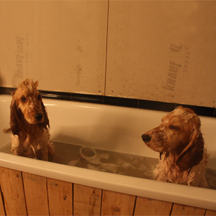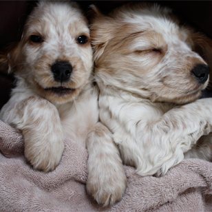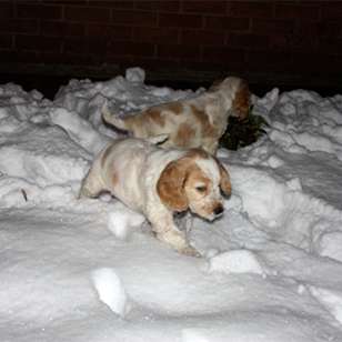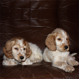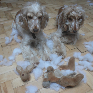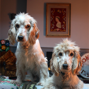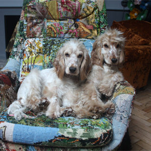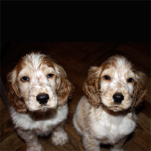 Joe and Jarvis are our two Orange Roan Cocker Spaniels in charge of security and demolition!